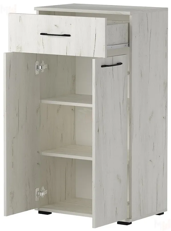 Тумба ТК-600 двустворчатая, с 2-мя полками и ящиком на роликовых направляющих.
