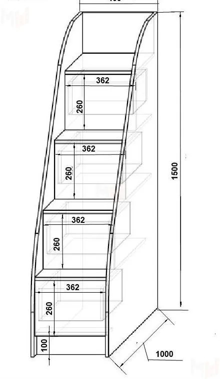 Тумба-лестница ФКК-13/8СВ имеет в конструктиве ступени с функцией ящиков для хранения любых вещей.