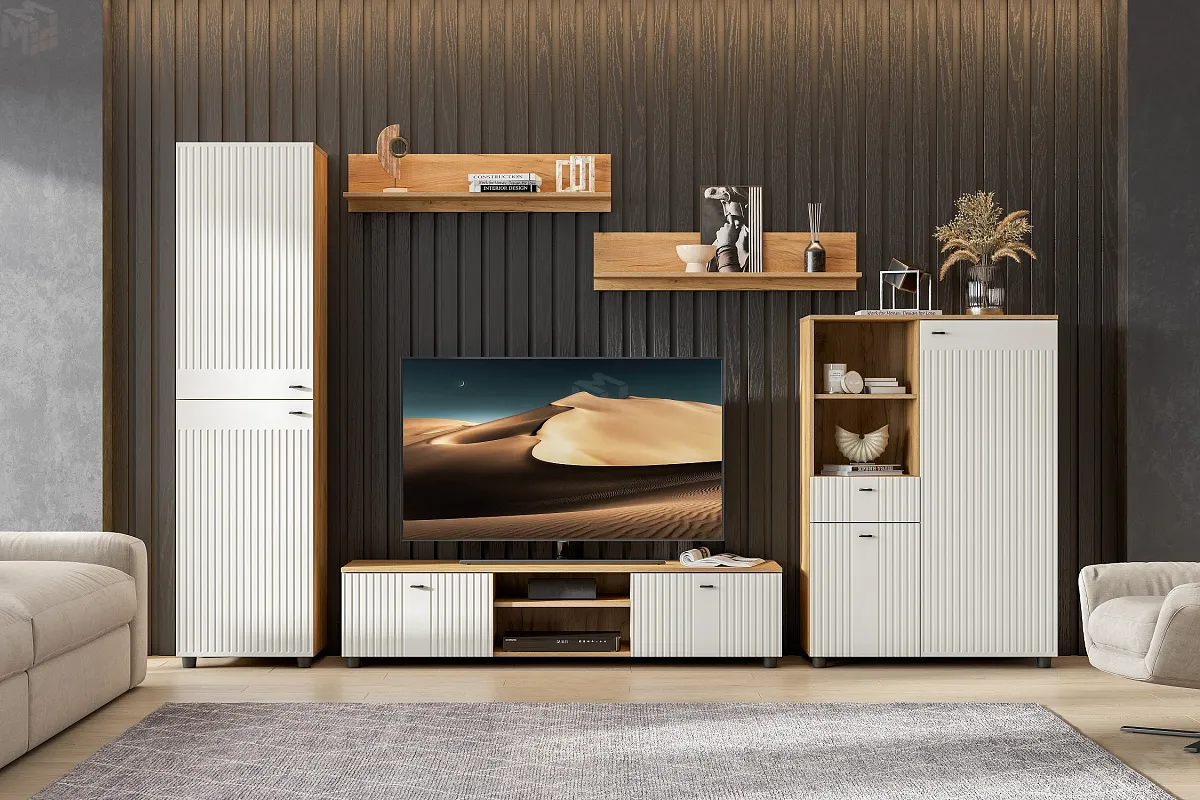 Тумба многофункциональная Милан Дуб Золотой/Белый Матовый