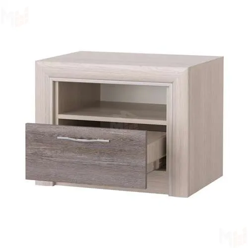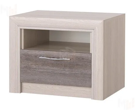Тумба прикроватная "Октава" с ящиком и нишей. Устанавливается стильная металлическая ручка, декор "тёмный никель". Периметр тумбы обрамлён профилем MDF оригинальной формы с патиной (окраской фасок)