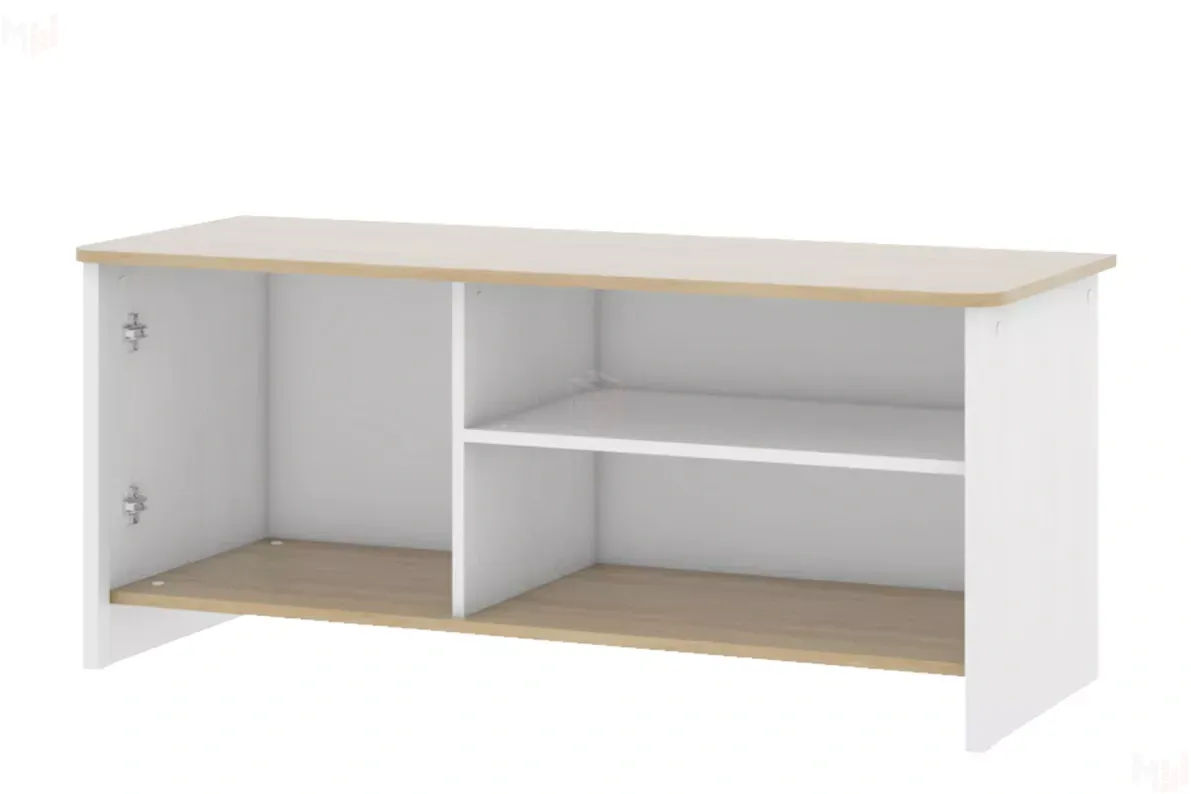 Корпус модульной системы изготовлен из 16 мм ламинированой древесностружечной плиты «Дуб Небраска» и 16 мм древесностружечной плиты, укрытой финиш-ппленкой «Сосна Белая». Торцевые поверхности корпуса закромлены кромками ABS и ПВХ. Рамочные фасады изготовлены из МДФ профиля и укутаны финиш-пленкой «Сосна Белая».