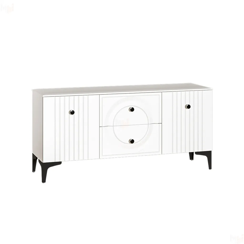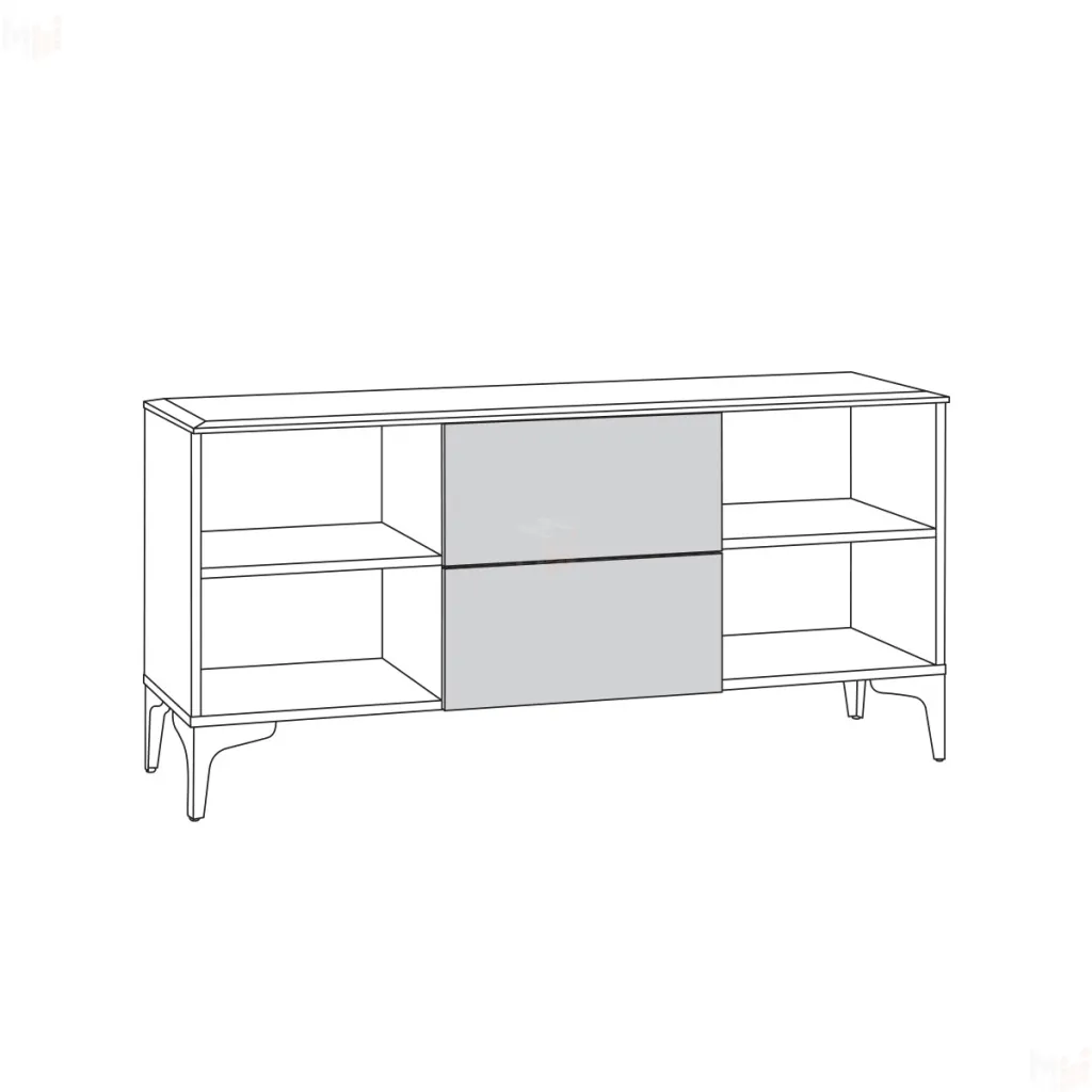 Тумба под ТВ 16.45 Валенсия в стиле ар-деко. Контрастное, графичное и стильное сочетание черного и хромированных деталей эффектно расставляет акценты на мебели. Геометричный рисунок фрезеровки даёт развитый светотеневой рисунок. Направляющие скрытого монтажа с доводчиками -