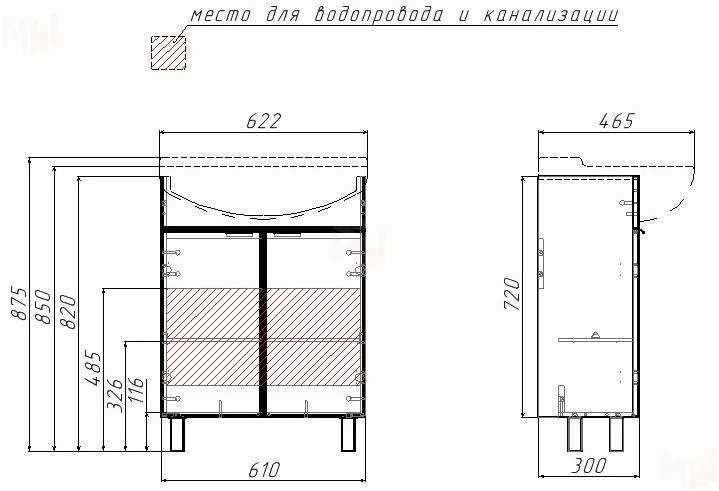 Тумба под умывальник "Амур 60" Loko без ящика Домино.