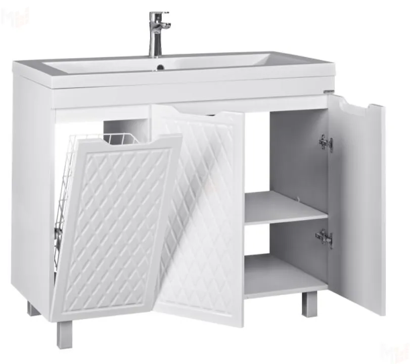 Тумба под умывальник "Andrea 100" 3D с корзиной для белья Домино