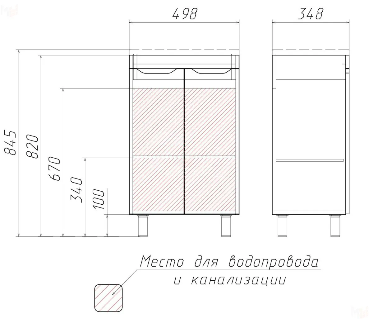 Тумба под умывальник 3D ANDREA 50 имеет две дверцы, полка посередине для комфортного использования.