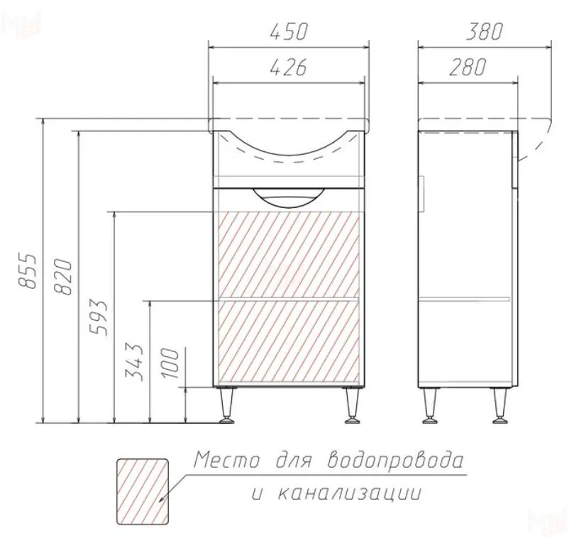 Тумба под умывальник "Уют 45" Грация без ящика Домино.