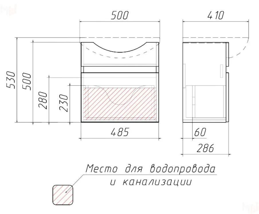 Тумба подвесная под умывальник "Элегия 50" Классик с одним ящиком В1 Айсберг.