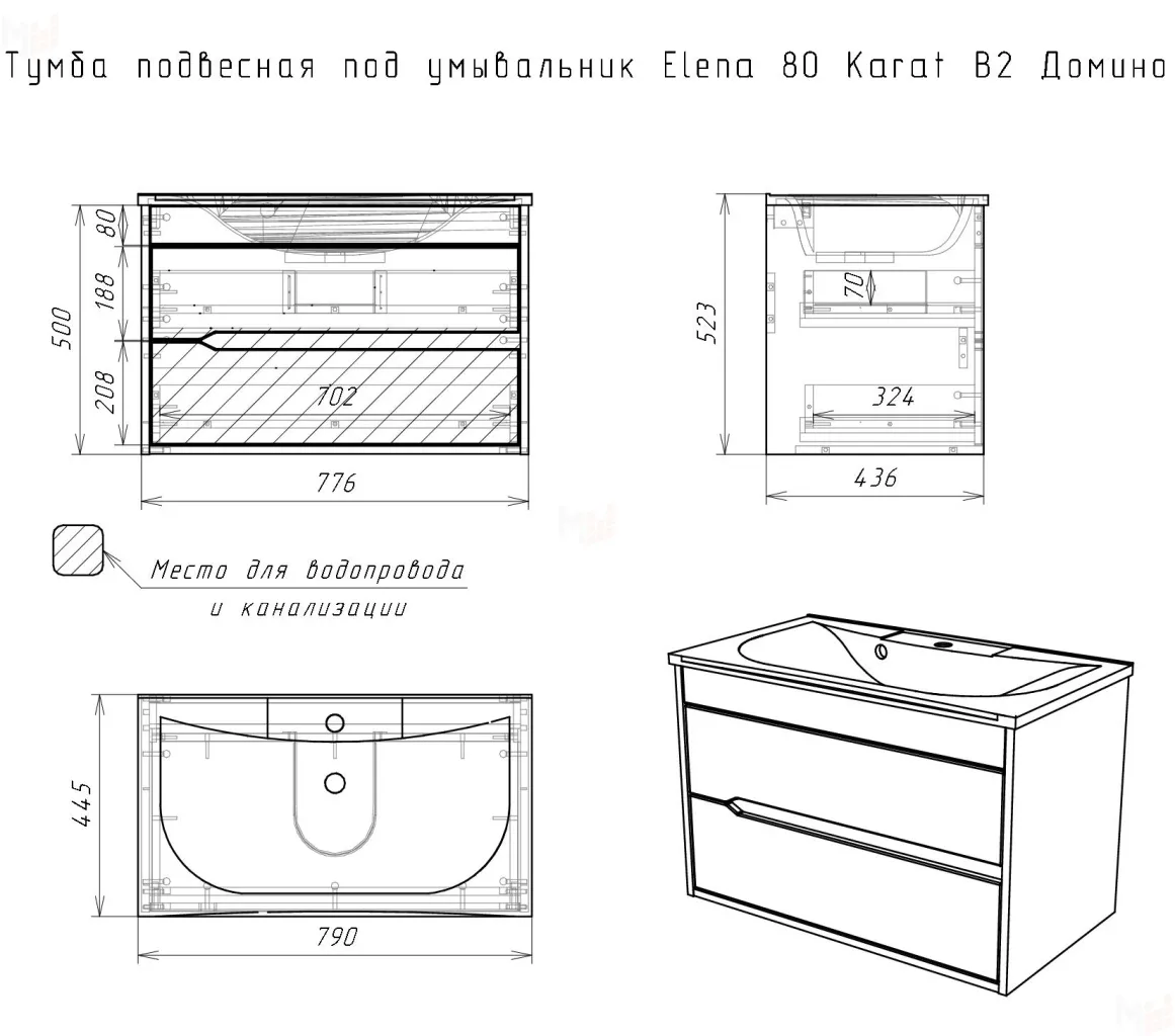 Тумба подвесная под умывальник "Elena 80" Karat В2 Домино.