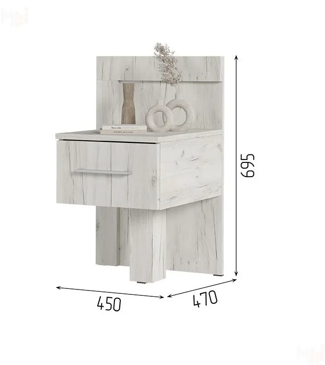 Тумба прикроватная Гранд стильная и практичная модель. Выполнена в тёплом, светлом цвете, что придаёт интерьеру лёгкость и естественность. Тумба прикроватная Гранд дополнит интерьер в скандинавском стиле. -