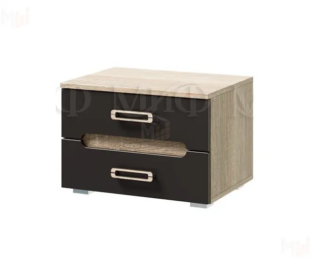 Тумба прикроватная из спального гарнитура Ким. Каркас ЛДСП дуб сонома, фасады МДФ графит софт.