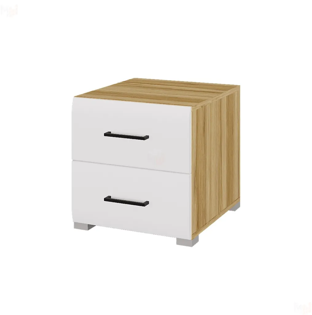 Тумба прикроватная Ненси из спального гарнитура Ненси. Корпус ЛДСП дуб золотой, фасады белый глянец.