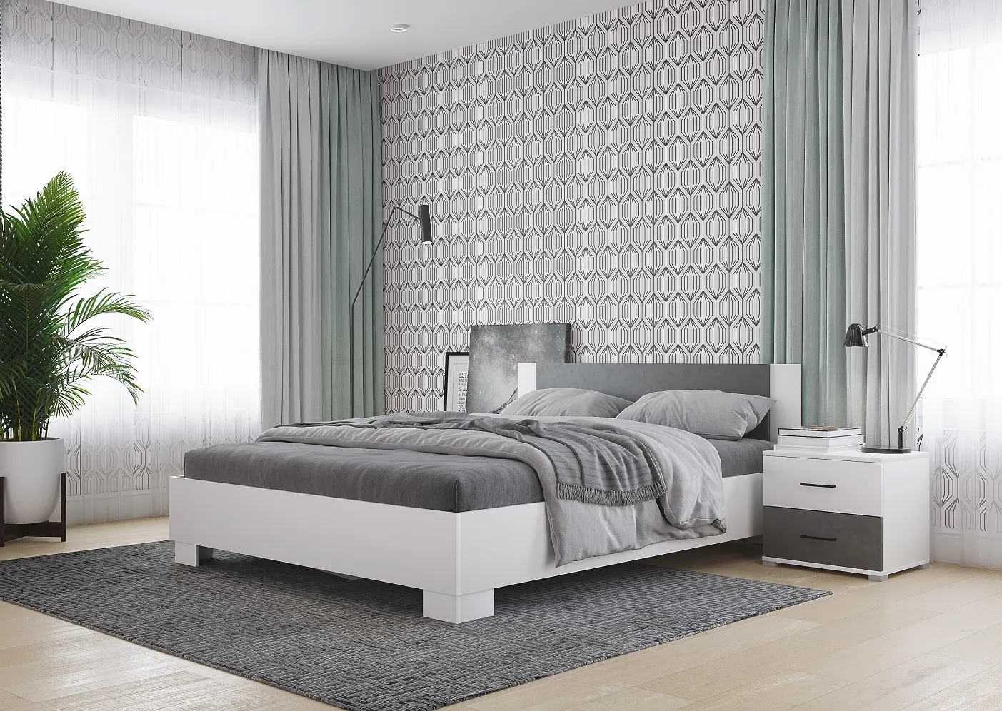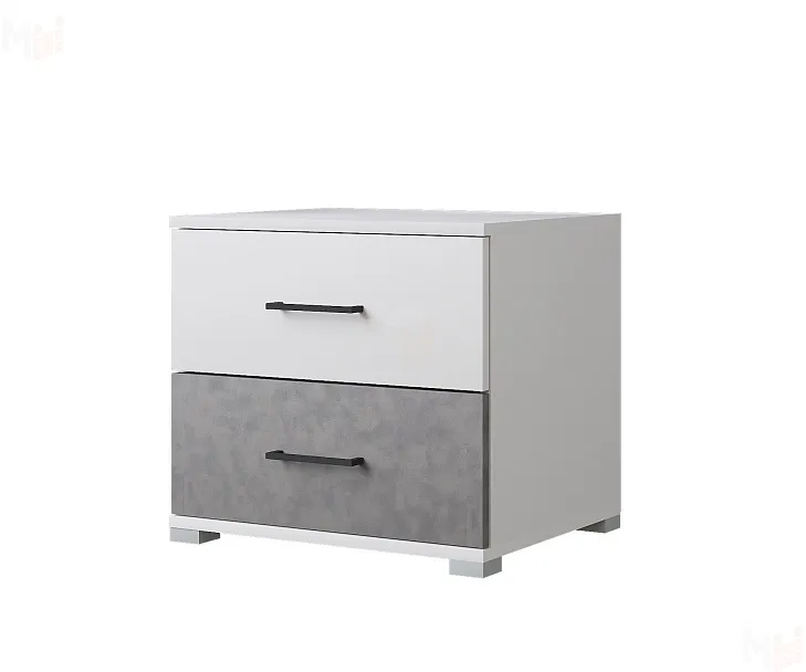 Корпус тумбы выполнен из белого ЛДСП, фасады ЛДСП Белый/Бетон.