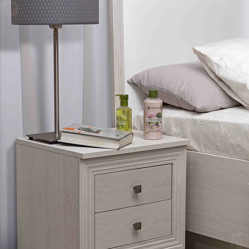 Компактная, но в тоже время вместительная прикроватная тумба прекрасно дополнит интерьер вашей спальни. Сверху положите книгу, установите ночник, а в выдвижные ящики тумбы уберите разные мелочи – очки, телефон, пульт от телевизора - откуда они не упадут случайно. Выдвижные ящики оснащены шариковыми направляющими полного выдвижения, что предполагает их удобную и простую установку при сборке, а также минимальный люфт. Рамочные фасады облицованы сложным профилем МДФ.