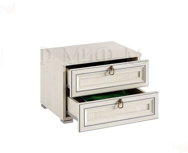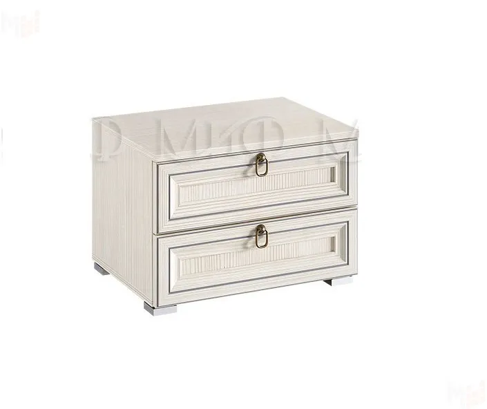 Тумба прикроватная Престиж-2 выполнена из ЛДСП, фасады со штапиком МДФ с патиной серебро.