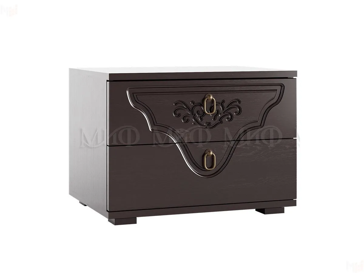 Тумба прикроватная Престиж выполнена из ЛДСП Венге, фасады МДФ Шоколад.