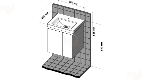 Тумба с раковиной подвесная Briz Бьелла 50 см