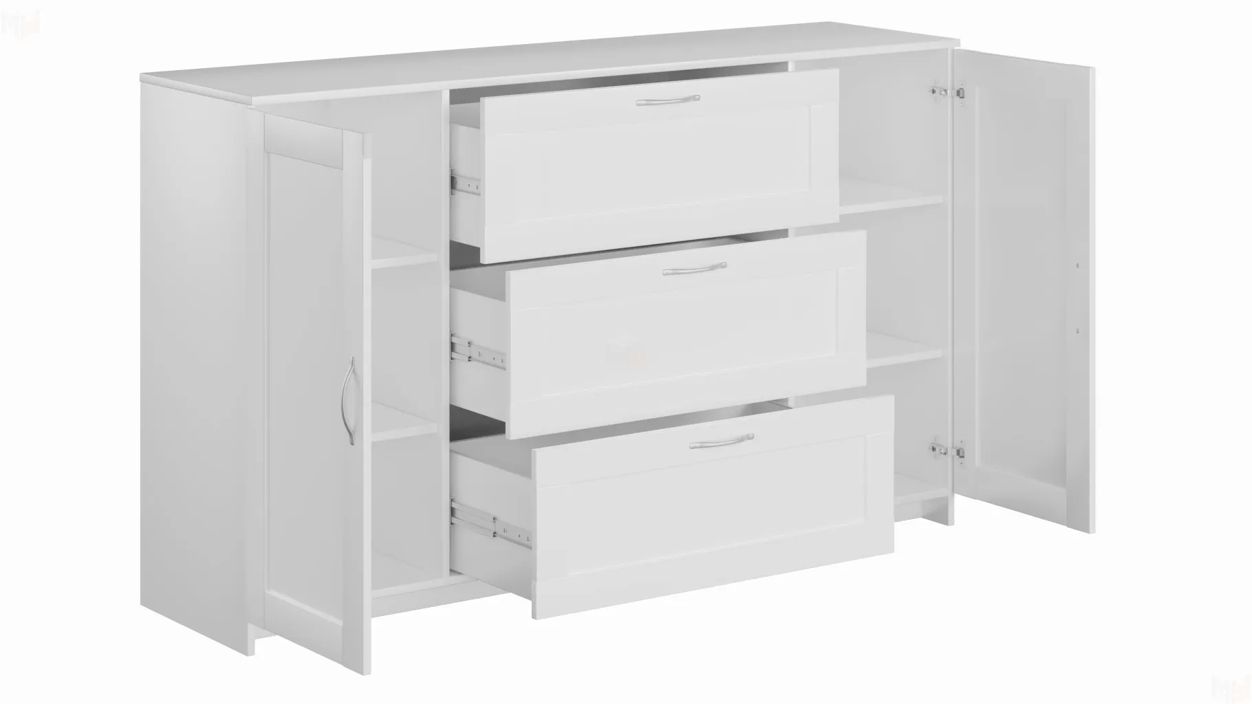 Тумба Сириус 2 двери 3 ящика выполнена из КДСП толщиной 16 мм белого цвета.