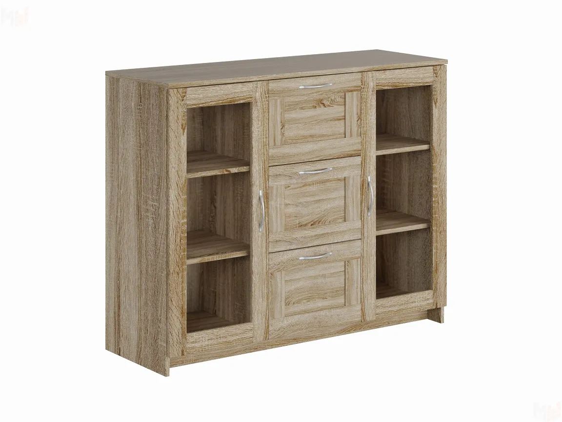 Тумба Сириус 2 двери 3 ящика выполнена из КДСП толщиной 16 мм цвета дуб сонома.