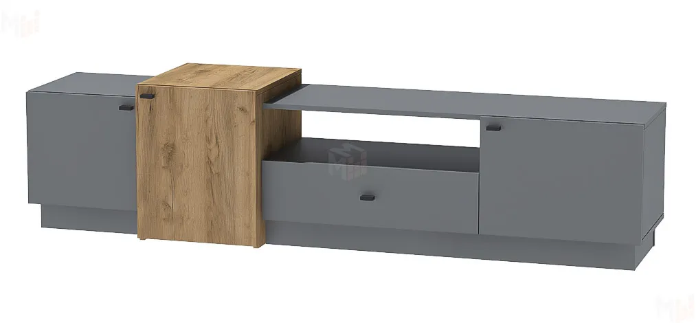 Оригинальная, современная тумба оснащена выдвижным ящиком на шариковых направляющих полного выдвижения и тремя дверками. -