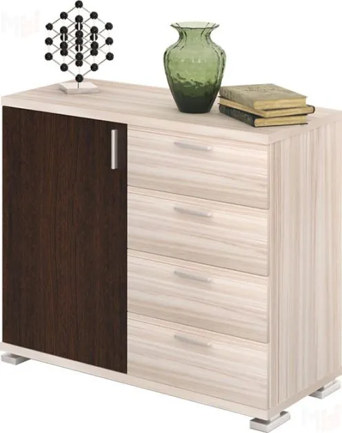 Малая универсальная тумба с четырьмя выдвижными ящиками отлично смотрится как в офисе, так и в прихожей.