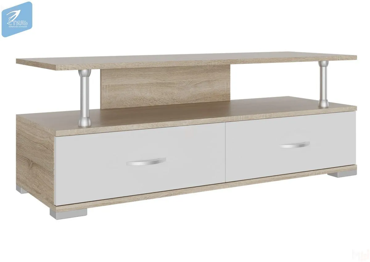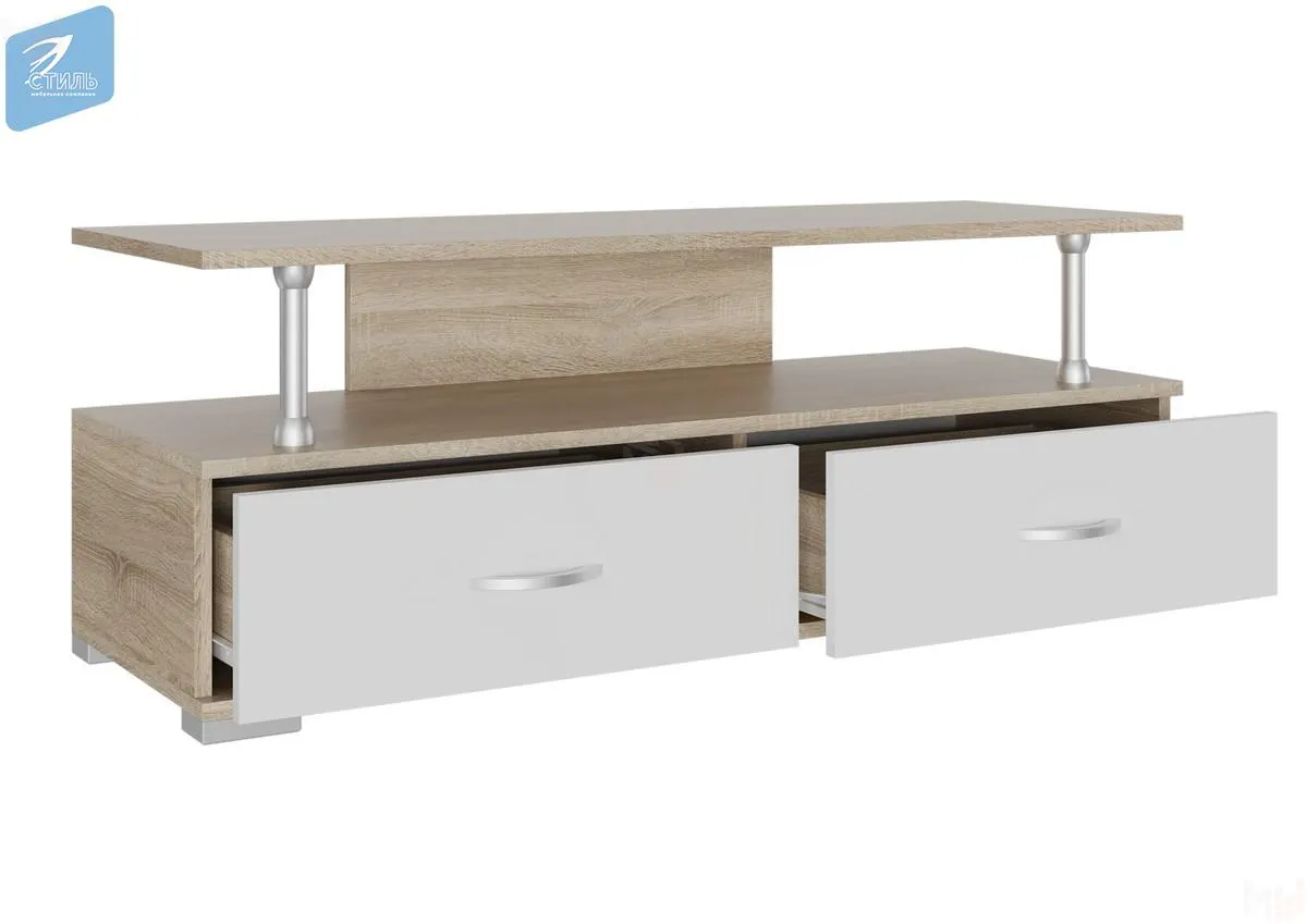 Тумба под телевизор имеет 2 выдвижных ящика, ящики оснащены роликовыми направляющими длиной 350 мм.