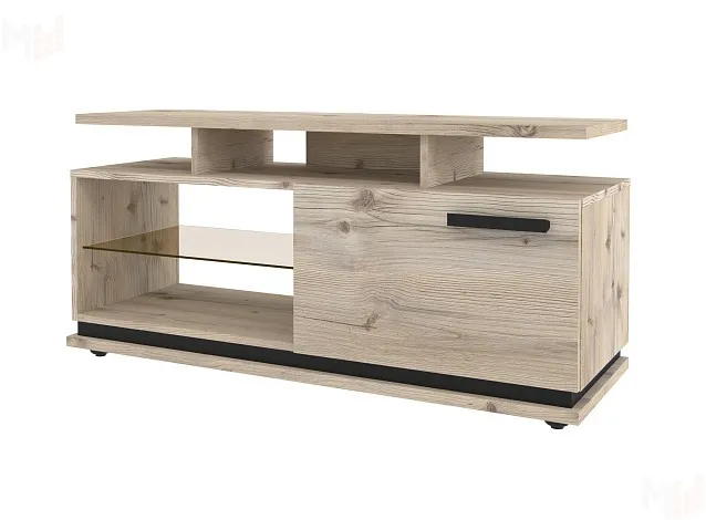 Чтобы сохранить легкость и простор в маленькой гостиной выбирайте Тумба ТВ малая. Низкая мебель сделает комнату просторнее, а стекло в сочетании с древесным декором создаст ощущение простоты. Комбинированный вариант открытых полок со шкафчиком с глухим фасадом отлично подойдет для размещения игровой приставки, дисков и геймпадов. Ширина тумбы позволит без труда разместить телевизор с диагональю до 44''. Регулируемые опоры позволят компенсировать незначительные неровности пола.
