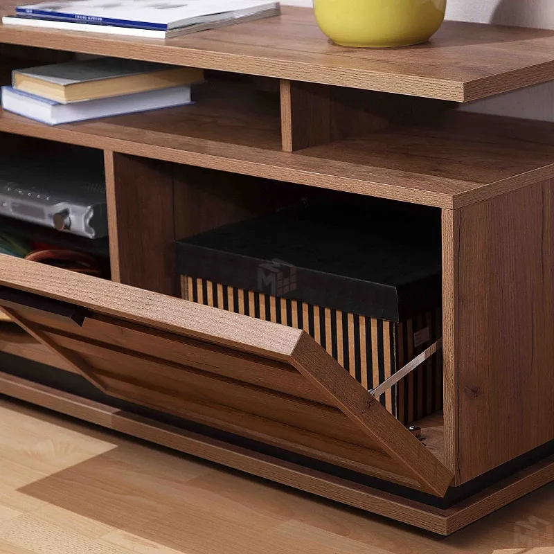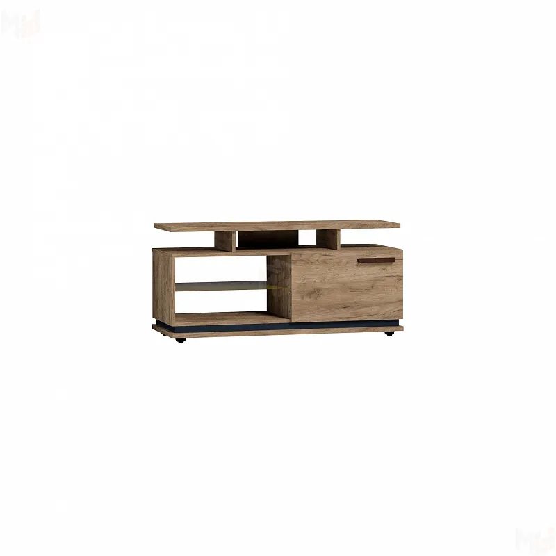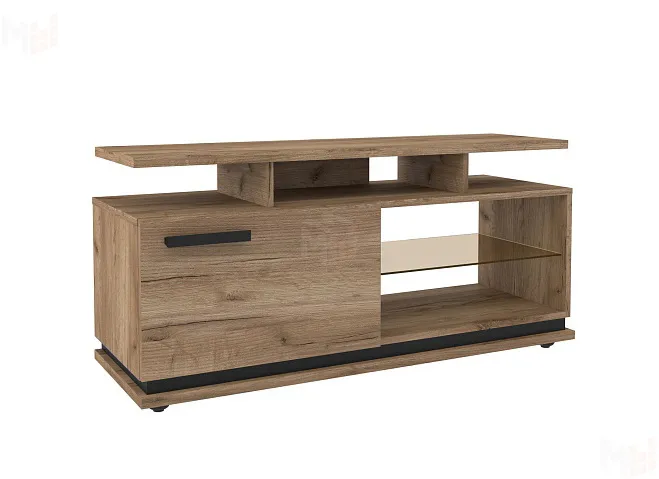 Чтобы сохранить легкость и простор в маленькой гостиной выбирайте Тумба ТВ малая. Низкая мебель сделает комнату просторнее, а стекло в сочетании с древесным декором создаст ощущение простоты. Комбинированный вариант открытых полок со шкафчиком с глухим фасадом отлично подойдет для размещения игровой приставки, дисков и геймпадов. Ширина тумбы позволит без труда разместить телевизор с диагональю до 44''. Регулируемые опоры позволят компенсировать незначительные неровности пола.