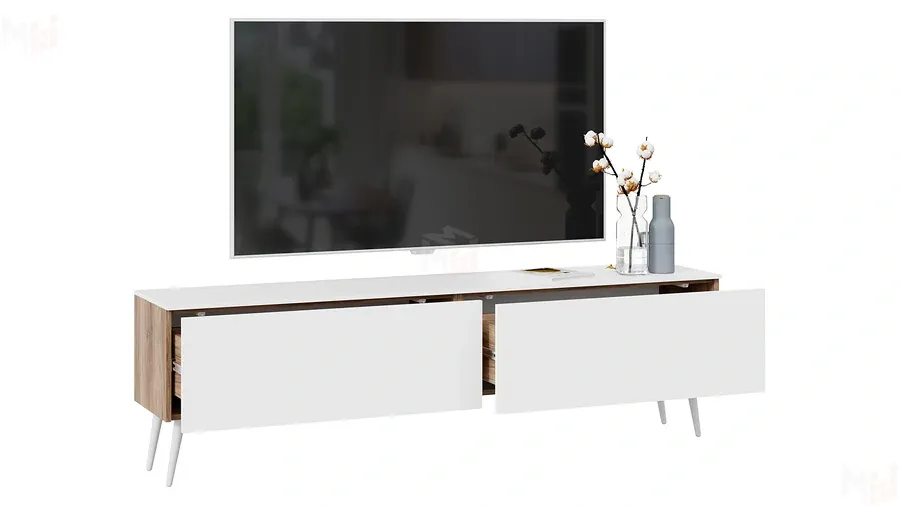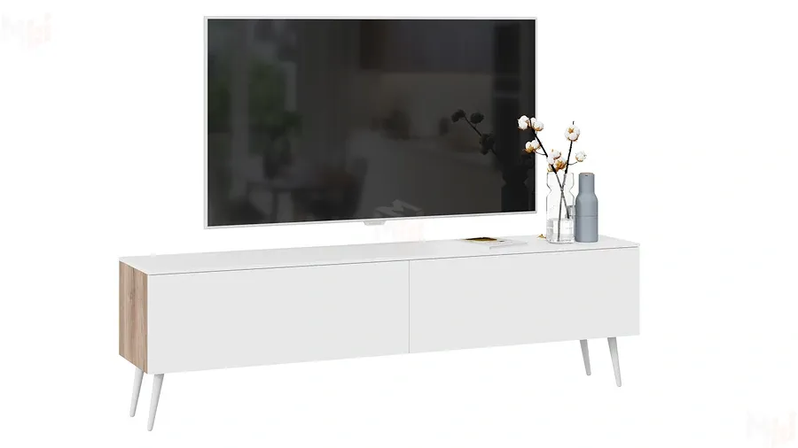 Тумба ТВ Порто с опорами - СМ-393.03.011 Яблоня Беллуно, Белый софт