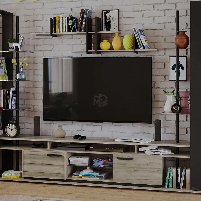Стильная тумба OSLO 3 является вместительным и функциональным предметом обстановки, не требующим большого количества свободного места. Динамичное сочетание задает ритм - фасад ЛДСП, открытая ниша, рамочный фасад в массивной рамке и раскладкой. Тумба может разместить телевизор диагональю до 60'', а две откидные дверцы позволят спрятать от посторонних глаз повседневные вещи. Из двух тумб ТВ: OSLO 3 и OSLO 333, можно создать современную компоновку, поставив их рядом, и увеличив, тем самым, зону для ТВ.Левосторонняя и правосторонняя сборка