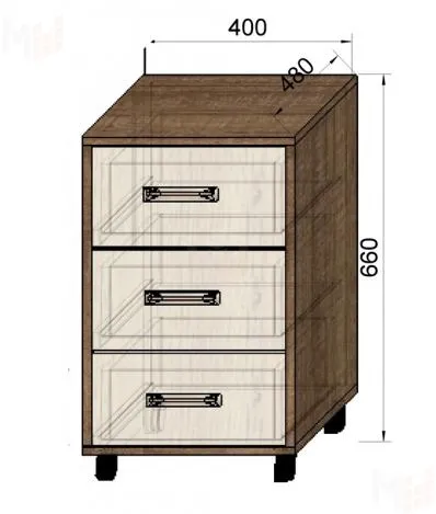 Тумба состоит из трех выдвижных шкафчиков, роликовые ножки.