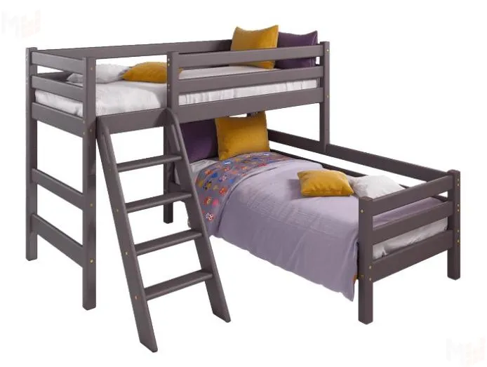 Вариант 8 угловая кровать «Соня» с наклонной лестницей — один из примеров идеального сочетания практичности, оригинальности и долговечности. Цветовое исполнение подходит сразу для нескольких стилей, а габариты — для комнат разной площади. Мебель для детской создается из безопасных материалов с отличной износостойкостью.