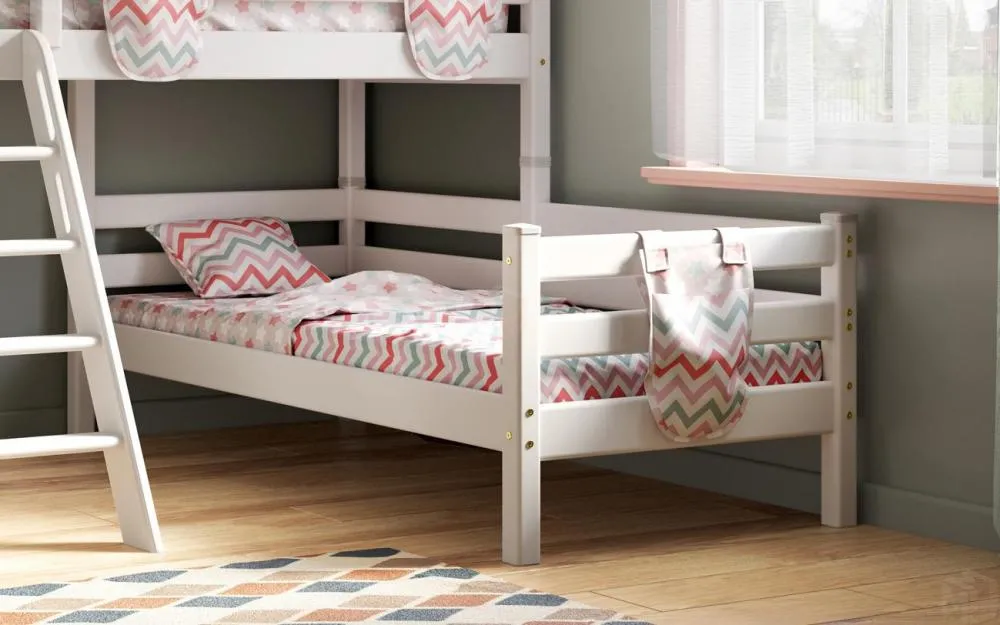Угловая кровать Соня-8 с наклонной лестницей Белый