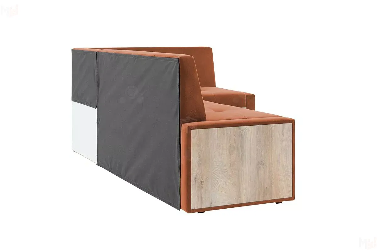 Стильная модель, оригинальность которой придают декоративные элементы на передней части дивана. За счет них диван не будет пачкаться, это сократит время на уборку и сохранит внешний вид мебели на многие годы. Невысокая спинка модели, глубокое посадочное место. Отсутствие подлокотников позволяет сэкономить пространство и получить большее посадочное и спальное место. Диван выполняется со спальным местом с трансформацией «дельфин», в угловой части предусмотрен большой выкатной вместительный бельевой ящик. По спинке и сиденью сделана прошивка и утяжка, что позволит материалу обивки дольше сохранить свой первоначальный вид. Большой выбор размеров, вариантов обивки и декоративных элементов ламинированной плиты с древесным, каменным или однотонным дизайном создадут эксклюзивный дизайн.