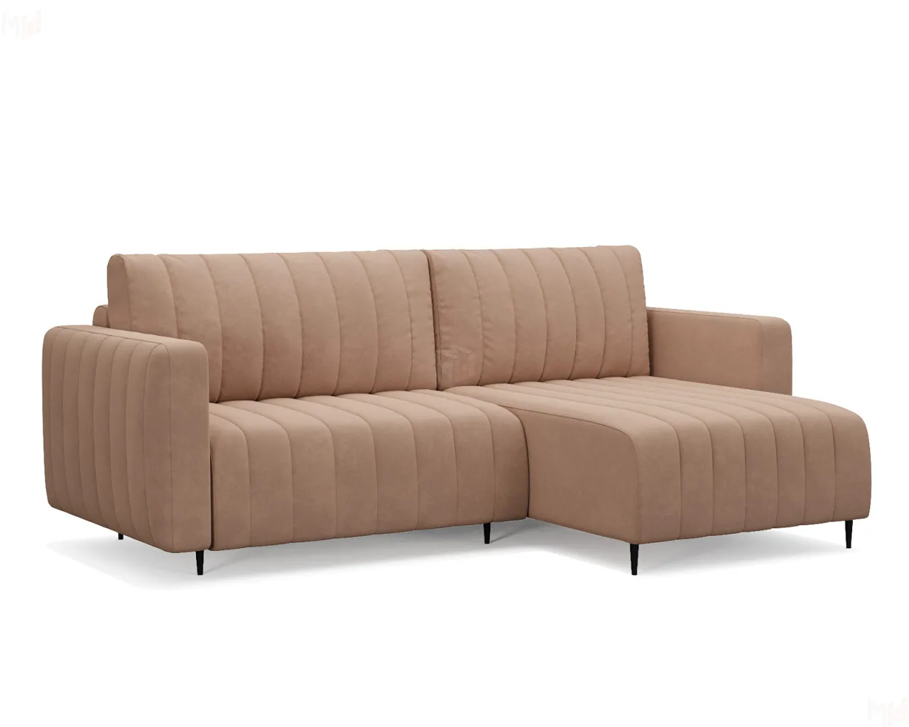 У модели встроенный бельевой ящик. Достать вещи быстро помогает механизм трансформации «пантограф». Благодаря выдвигаемой вперед передней секции, угловой диван можно поставить вплотную к стене, не беспокоясь о повреждении напольного покрытия при трансформировании.