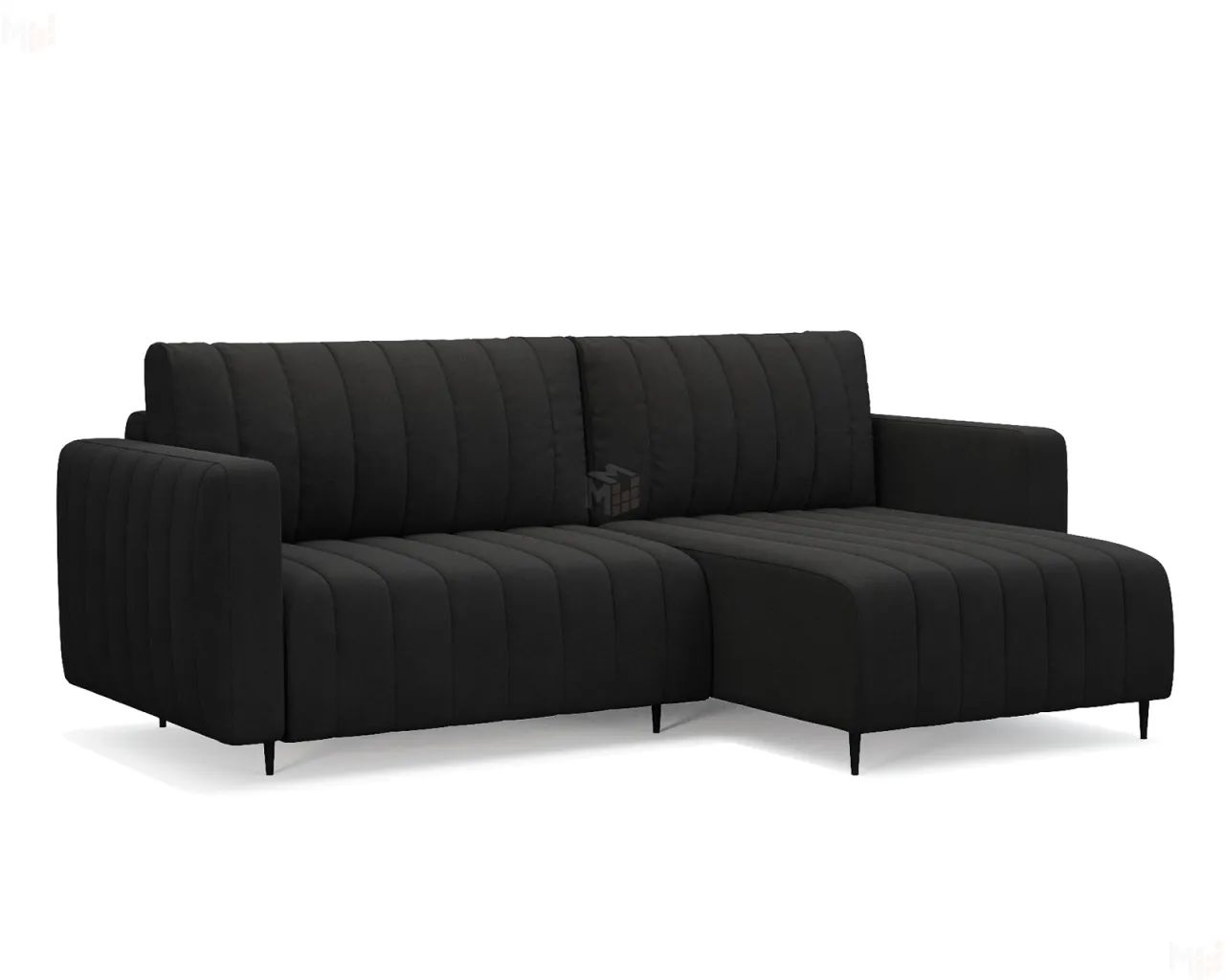 У модели встроенный бельевой ящик. Достать вещи быстро помогает механизм трансформации «пантограф». Благодаря выдвигаемой вперед передней секции, угловой диван можно поставить вплотную к стене, не беспокоясь о повреждении напольного покрытия при трансформировании.