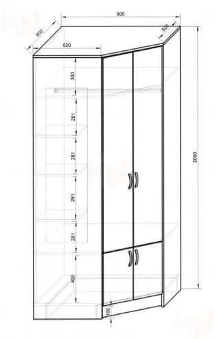 Шкаф ФУТ-13/3 серии Фанки Кидз Футбол выполнен в виде угловой конструкции с функциональным наполнением: полка и металлическая штанга, внизу - выдвижные ящики (2 шт), в них предусмотрены роликовые направляющие.
