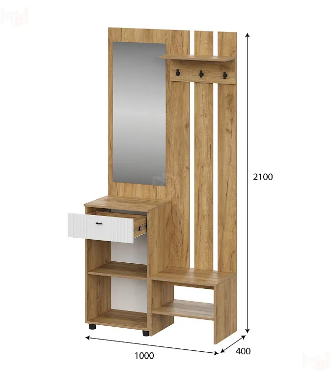 Ширина:1000 мм, Глубина: 400 мм, Высота: 2100 мм