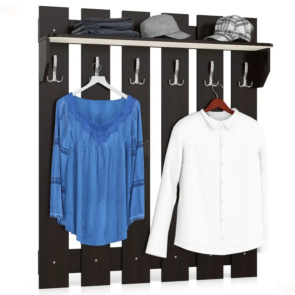 Навесная панель вешалка на 6 крючков, шириной 120 см. Материал ЛДСП. Цветовое исполнение на выбор: ясень шимо темный, ясень шимо светлый или венге.