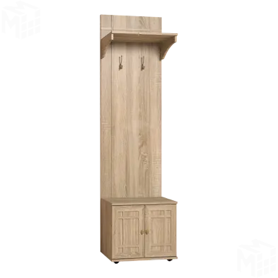 Узкая маленькая прихожая - вовсе не проблема. В простенок шириной всего 56 см может поместиться 7 плечиков с верхней одеждой, несколько курток на крючках, сумки и портфели. И все это на стойке-вешалке! Обязательно крепление к стене на подвесы. Стационарная штанга выдерживает нагрузку до 20 кг.