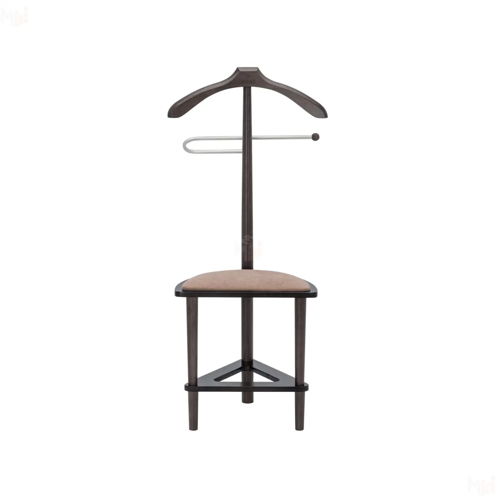 Плечики изделия и ножки изготовлены из массива бука, основание сиденье – МДФ, мягкий элемент: ткань микровелюр Candy mocco. Изделие покрыто высококачественным итальянским шелковисто-матовым лаком. Данная модель может использоваться не только, как вешалка, но и как стул, который способен выдержать нагрузку до 120кг. Металлическая трубка придает вешалке изящности, прекрасно гармонирует с общим видом изделия. На трубку возможно повесить брюки, юбки, ремни. Подойдет для использования как в стильной комнате, так и в прихожей.