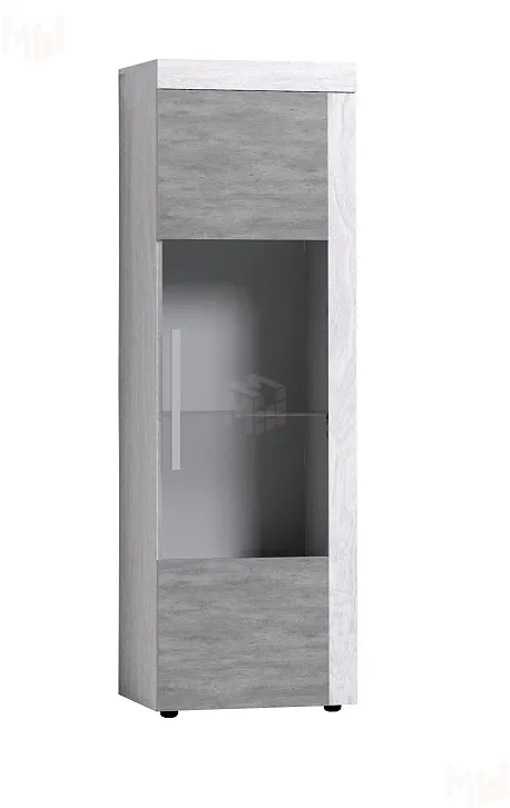 Если вы считаете, что хранить в гостиной посуду уже не модно, шкаф со стеклянной дверцей и стеклянными полками станет отличной витриной для дорогих и любимых фотографий и памятных вещиц. Стеклополки в обработке еврокромкой выдерживают до 10 кг каждая. Их можно декоративно подсветить с помощью светодиодной Berlin 5 Подсветка (в комплекте не поставляется, приобретается отдельно). Фасад перенавешивается на левую и правую сторону. Серебристая стильная ручка из массива дерева и серое тонирование стекло фасада вносят смелые дизайнерские штрихи в восприятии актуального декора "под бетон".