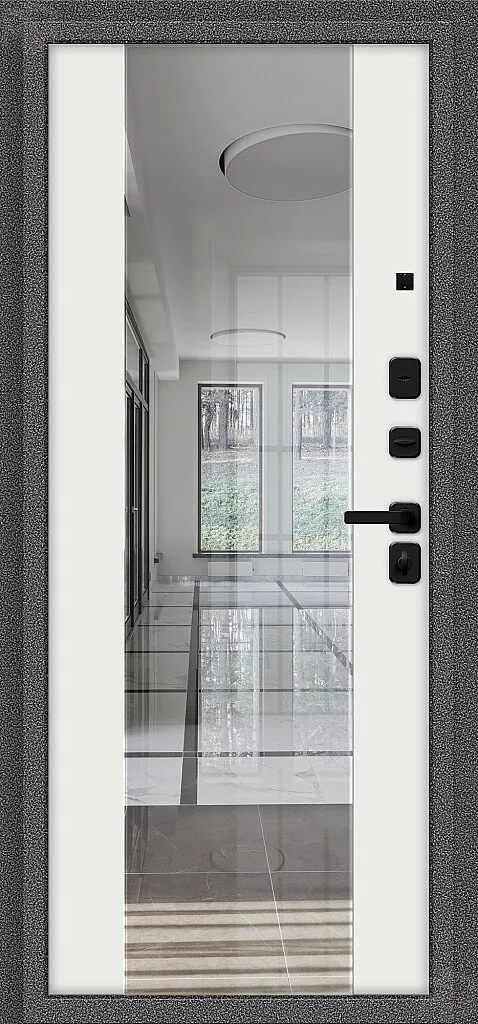 Входная дверь класса Комфорт с наружным открыванием. Изготовлена из легированной холоднокатаной стали.