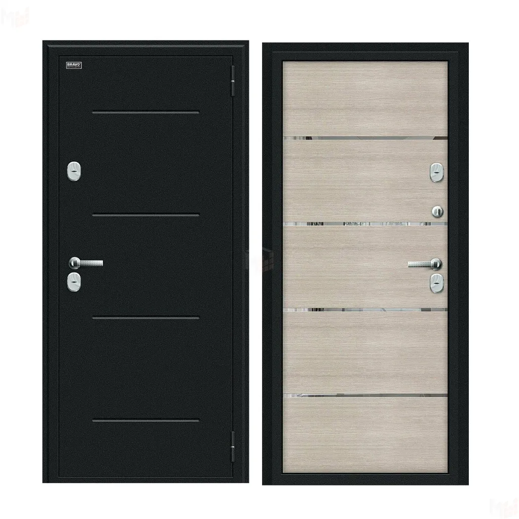 Входная металлическая дверь Thermo Лайн Букле черное/Cappuccino Veralinga