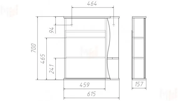 ширина 600 мм, глубина 157 мм, высота 700 мм