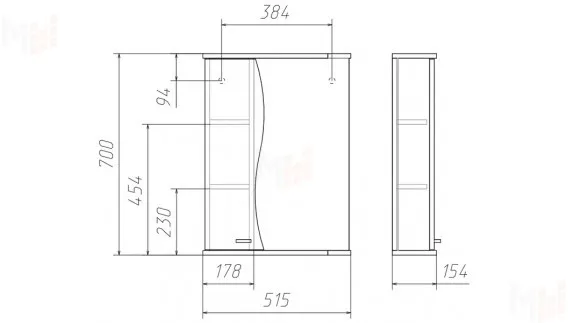 ширина 500 мм, глубина 154 мм, высота 700 мм